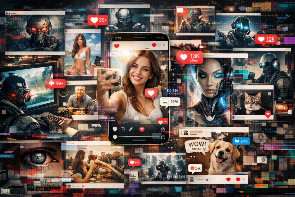 Feeds increasingly feature uncanny AI outputs—slightly off expressions, repetitive scripts—leading users to quit platforms amid declining quality. Reddit discussions highlight 2026 as a tipping point, with AI destroying real content incentives.​